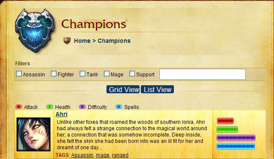 League of Legends هى اكثر لعبة تحتوى على شخصيات او ابطال الشخصيات كثيرة جداً ولا يمكن حصرها بموضوع ولكل شخصية طريقة لعب وضربتها الخاصة. برغم تعدد الشخصيات وتنوعها .. الا اننا نستطيع تصنيف الشخصيات الى ..