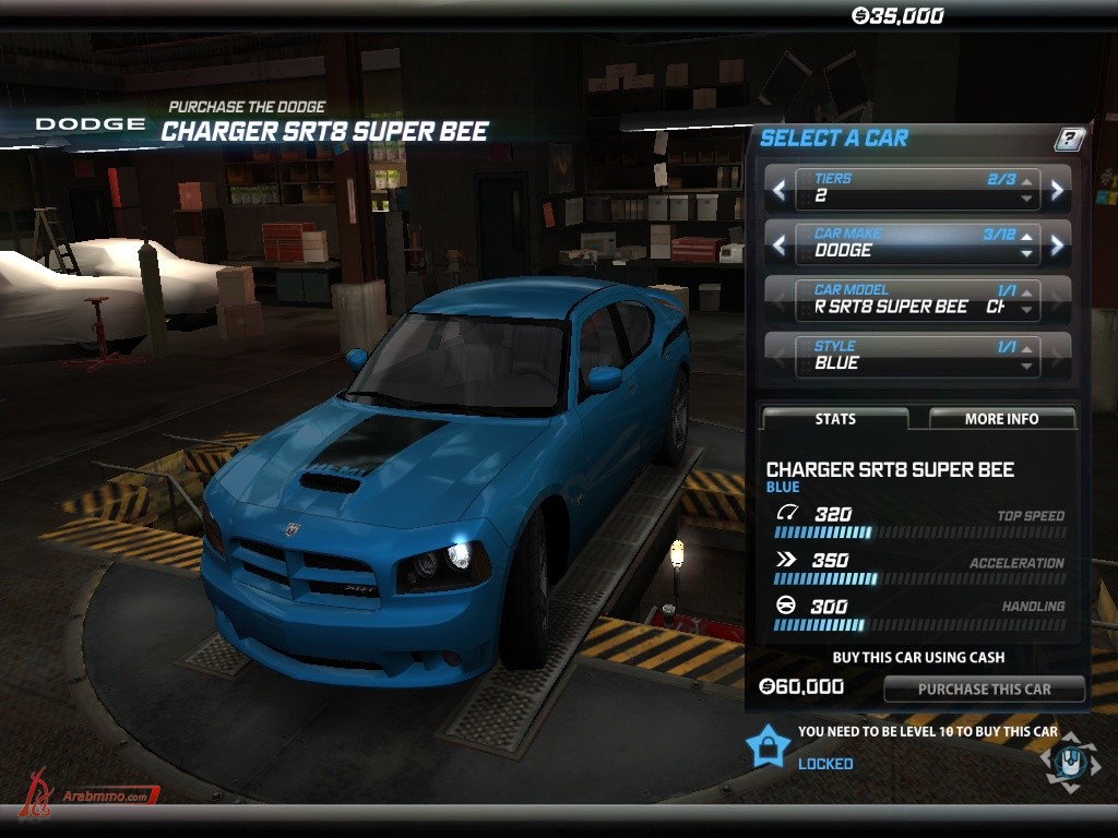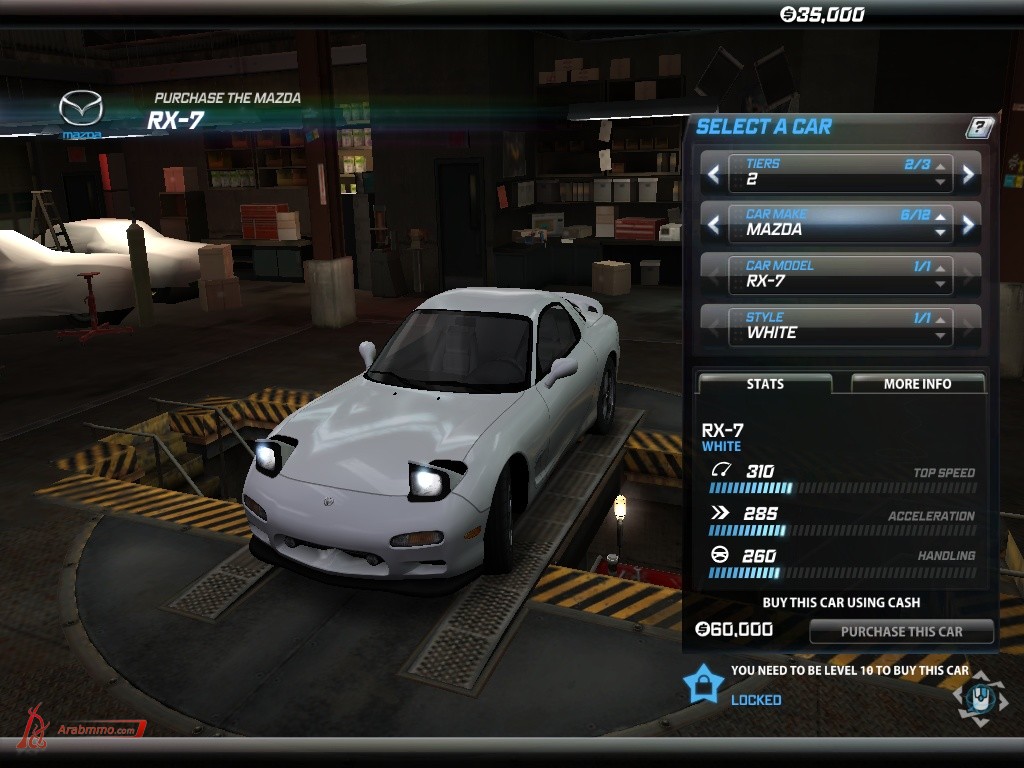 اختيار سيارات السباق في لعبة NFS World الضغط علي صورة لعرض الحجيم الأصلي