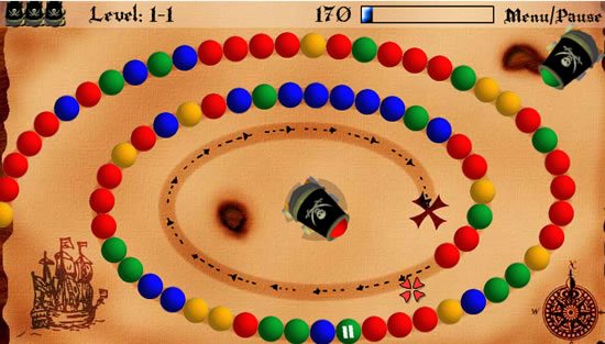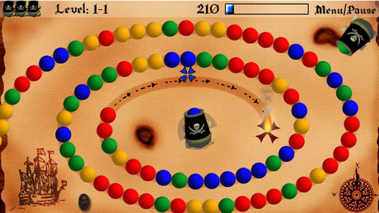 وصف اللعبة: لعبة زوما ديلوكس القراصنة Zuma Deluxe لعبة فلاش شبيهة جداً باللعبة المشهورة زوما Zuma .. عليك أن تقذف الكرة باتجاه الكرات التي تحمل نفس اللون حتى تكون صف 3 كرات أو أكثر من نفس اللون .. و يجب ألا تدع الكرات تصل إلى الحفرة في نهاية الطريق لأنك سوف تخسر !