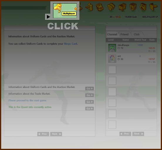 اضغط الزر "Multiplayer" ثم الدخول الى قاعة المباراة الجماعية اللاعبين. هناك نوعين من اللعبة أي الانضمام الى لعبة جاهزة وبدء لعبة جديدة.