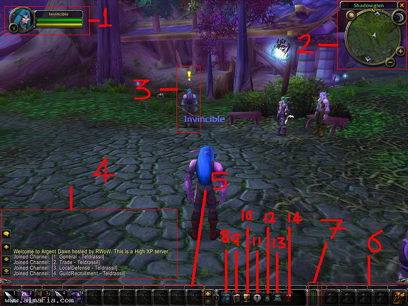 5- skill bar : ده اللى بتحط فيه اسكيلاتك زى سيلك .. ممكن تدخل على ال interface menu ( اتك Esc هتلاقى interface options ) و فيها ممكن تزود بارات زى مانت عاوز لحد ما تملى الشاشة