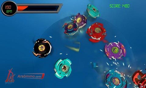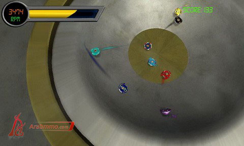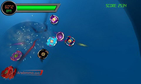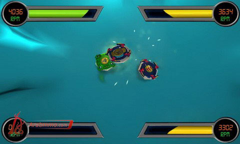 Battle against other BeyBlades. You can select many different parts and build your custom BeyBlades, and then battle with them in a quick match or maybe in a tournament. Or try to beat your high score in the arcade mode. In arcade mode you will be fighting against endless coming BeyBlades and try to get a high score. You get more RPM and points every time you stop an AI BeyBlade. (BeyBlade with high defence recommended)