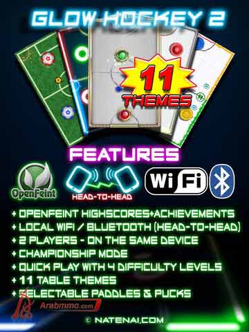 Glow Hockey 2 HD delivers a new style of hockey game. Easy to play, hard to master. Challenge yourself with the computer opponents or play with your friends!