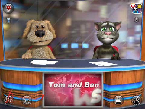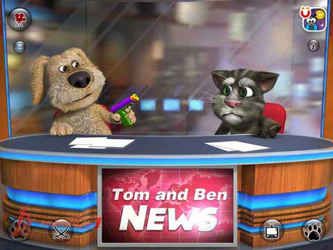 Talking Tom & Ben have become famous TV news anchors! Talk to them and they will repeat what you say in turns. Create & record funny conversations between them.