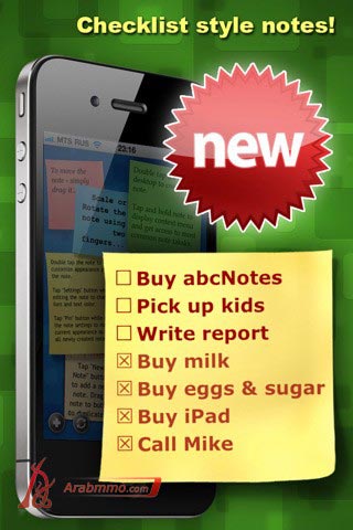 abcNotes was designed to become your stylish and highly customizable, functional and easy to use assistant in taking notes and managing To Do lists. It takes advantage of unique iOS devices touchscreen preserving realistic look & feel of paper sticky notes.
