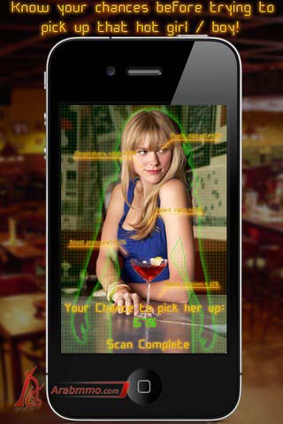 Flirt Scanner is a fun app which simulates the scanning of other persons' body functions to predict willingness for flirting and also provides the matching pickup line.
