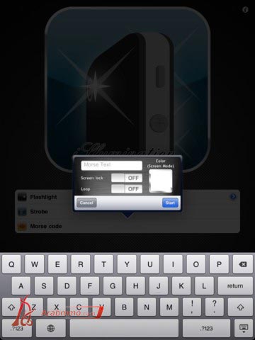 x Morse code (LED-light for iPhone 4 & Screen for all other devices)