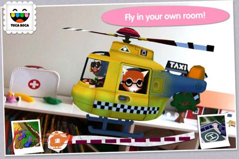 Helicopter Taxi is a digital toy that allows your kids to be a pilot for a day – without leaving the room! Fly the 3D helicopter until you get a call with a mission. Put the iPhone down on a flat surface and the helicopter picks up a new passenger and then takes off to the next destination! Fun voices and cute characters guide you along the way until it’s time to fly home and rest for the day.
