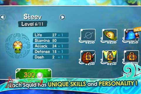 Steev, Vahine and the rest of the Squids are in danger! An infectious black ooze is corrupting their world. Only a few heroes can fight back and save their lush underwater kingdoms! Recruit a small army of stretchy Squids and lead them into turn-based battles against the dark hordes.