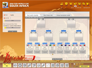 إختيار فريقك من 199 منتخب وطني في المبارياة النهائية ل2010 FIFA World Cup ثم إبدأ مغامرتك في 2010 FIFA World Cup.
