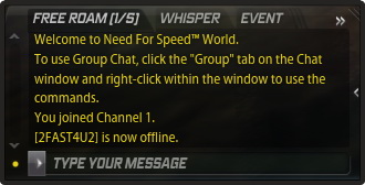 اضغط المجموعة لاجراء الدردشة مع الناس ثم اضغط اسماء الاصدقاء بالزر الأيمن اختار "دعوتهم على الاشتراك في المجموعة " ثم ترسل المعلومات في نافذة الدردشة في Need for Speed World ، اضغط ENTER ، دخول المعلومات واضغط ENTER مرة أخرى.